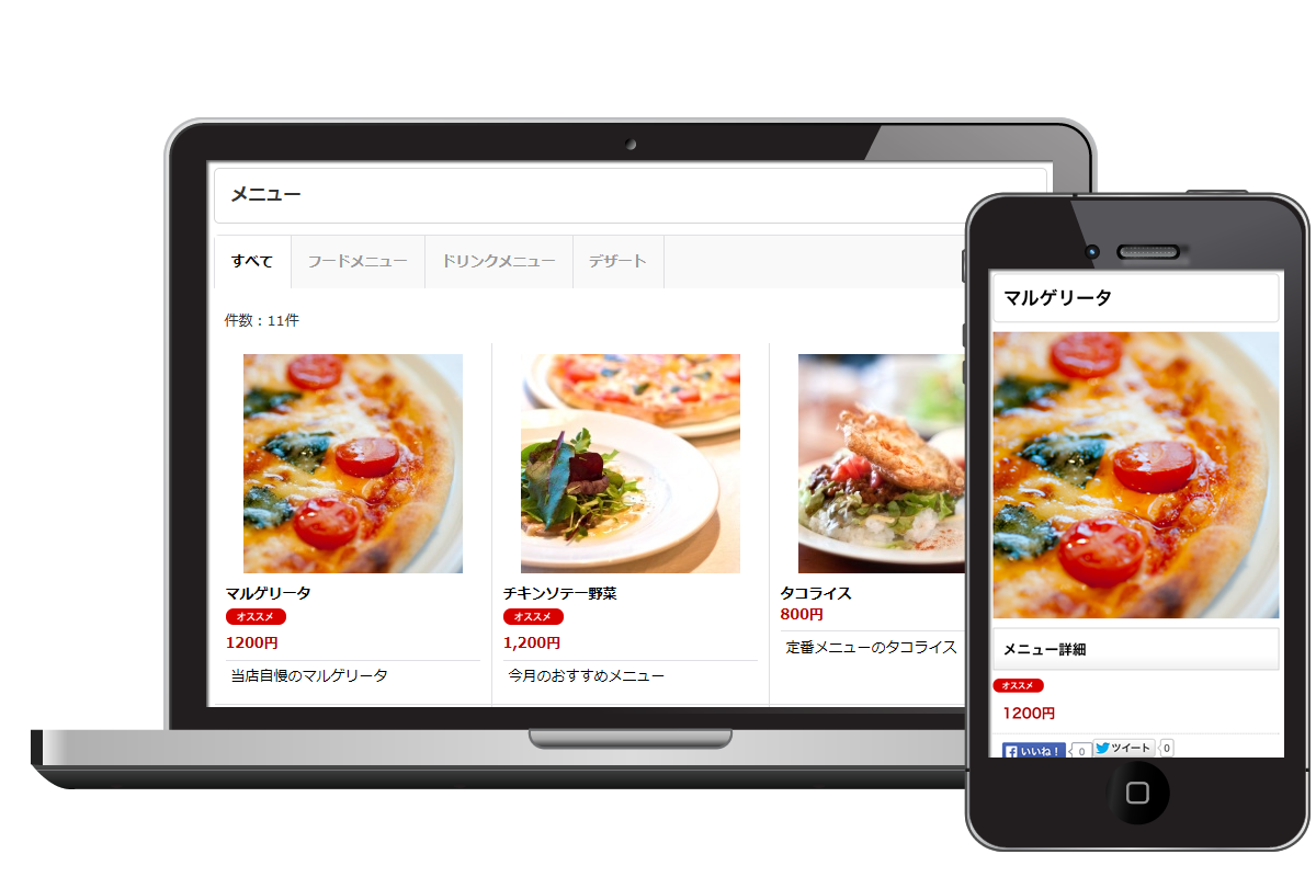 店舗のTwitterやFacebookなどのSNSサービスと連携できます。TwitterやFacebookのウィジェットをかんたんにサイトに表示できます。